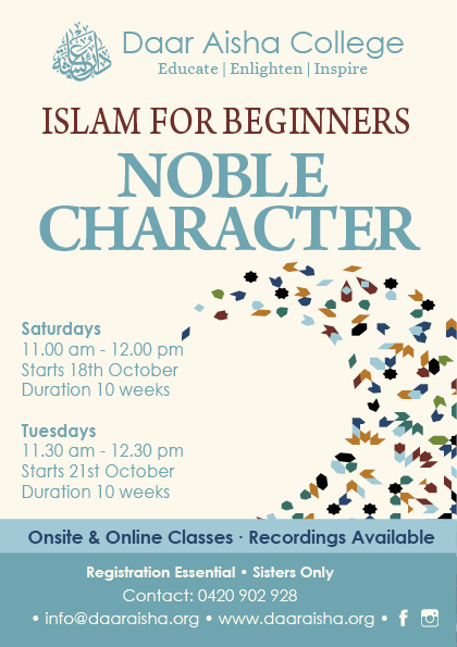 The Messenger of Allah SalaAllahu alaihi wa sallam said: Nothing weighs heavier in the scales than good character Any Muslim who is adorned and beautified with an Islamic character will indeed achieve the nobility of the elite of Allahs creation, thereby becoming the beloved of Allah Most High. For a Muslim, character building is essential to ones faith and is derived from the Quran and Sunnah of our beloved Prophet salaAllahu alaihi wa sallam. True servitude to Allah, the Most High, is to adhere to the principles, noble qualities and manners that are drawn from the Quran and Sunnah. This course is a guide to practical conduct by studying the essentials of good character and noble qualities which act as saviours of the believers in this life and the next.