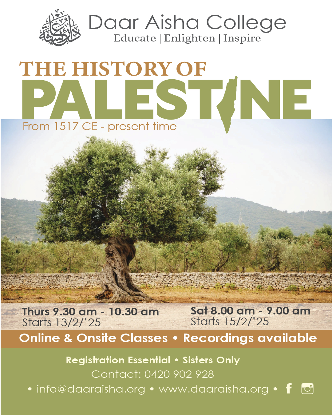 Al Quds and Palestine. A land of promise, Prophethood and boundless blessing. Rich in history, vibrant in culture and vast in its contribution to human civilisation. A land mostly of faith, of peace and of prosperity, but also on occasion marred by affliction. This course will seek to weave together the multi-faceted threads of the religious, cultural, social and political past which intertwined to produce a brilliant tapestry of human interaction and endeavour in these precious lands. We inhabit now a complex reality that cannot be truly grasped unless we embark on a journey into the ancient past and map out a path to our present. We must listen to the testimony of this land, hear the voices of its heroes and learn from the mistakes of its villains. The future depends upon a comprehension of the past. Let history be your ultimate teacher for a land that deserves your care.