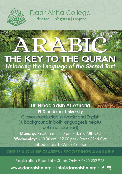 The Second Stage: Students who successfully complete the first stage will continue to the 2nd Year of the course in which they will focuses on grammar: Nahw & Sarf; sentence structure along with the continuous process of building vocabulary, translation, and comprehension.